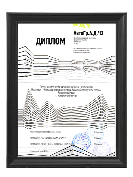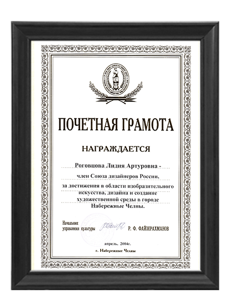 Проекты Фонтанов и их реализация: для офиса предприятия « ДОМКОР», в санатории « Ижминводы», сухие фонтаны для частных участков. Интерьеры кабинетов для офиса « ДОМКОР» . Кабинет генерального директора , административные и офисные кабинеты предприятия « Росла». Фасады частных домов и ландшафтов в п. Новый, п. Замелекесье, г. Наб . Челны. В районе п. Красный Ключ в г. Нижнекамске . Проект реконструкции музея – полигона под открытым небом « Елховнефть. Татнефть.», проект с реализацией юбилейного праздника на гл. площади в г. Альметьевск Салон красоты « Мерлин Монро» г. Наб. Челны. Предприятие "Ритек" в г. Набережные Челны. Выполнены многие другие интерьеры частных домов, квартир и общественных интерьеров.