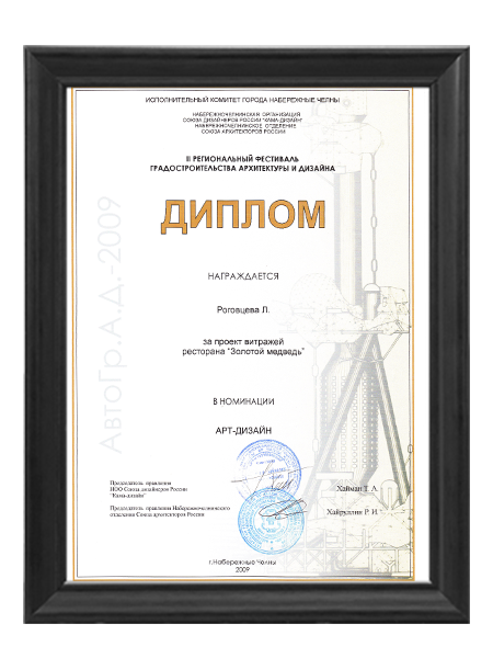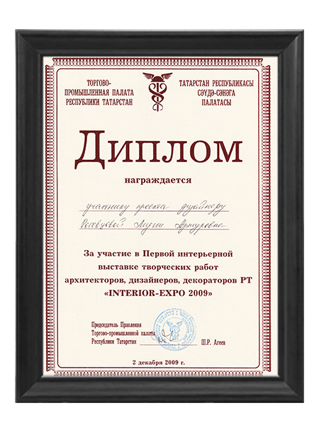 Торговый зал магазина « Шанхай». Дизайн кафе в спорткомплексе в п. ГЭС. Торговый зал магазина « Элегант». Дизайн холла административного здания АОЗТ « Хладокомбината». Помещения и фасад бассейна в спортивном комплексе ОАО « Татнефть». г. Нурлат. Помещения в салоне красоты « Вдохновение». Дизайн помещений здания « Горкомзем». Торговый зал магазина « Элегант». Дизайн помещений для административного комплекса ЗАО « РАССТАЛ». Дизайн развлекательного клуба « Фараон». Салон- магазина « Одежды» в торговом центре г. Нижнекамска. Салон красоты « Эль Бьюти» фасад и интерьер г. Елабуга. Проект торгового дома шубных изделий « Шанз-Элизе» г. Набережные Челны. Административные кабинеты завода « КЭСП» г. Нижнекамска. Административный корпус предприятия « Росла» (интерьеры и фасады здания.) г. Наб. Челны. Художественные витражи для ресторана « Премьер» . в деловом центре « Форт Диалог» г. Наб. Челны. Художественные витражи в ресторане « Золотой медведь». г. Наб. Челны. Художественные витражи в развлекательном клубе « Колизей». г. Наб. Челны. И многие др. витражи для частных и общественных интерьеров. Административные кабинеты и интерьеры бассейна и фитнеса , бара в спа-отеле « Расстал». г. Наб. Челны.. Эскизный проект для торгового центра « Фонтан». Интерьер кабинета директора торг. центра « Фонтан». Интерьер оздоровительного комплекса в г. Нижнекамск. Интерьеры частных гостиниц в г. Наб . Челны. Ландшафт для храма « Серафима Саровского» и храма « Святой Троицы» г. Наб Челны. Мечеть в Сарапульской области. Оздоровительный комплекс в п. Белоус. Интерьеры в пос. « Чудесная страна» . Так же интерьеры с реализацией санатория « Ижминводы» - интерьеры холлов, номеров, столовой и фасада здания. Интерьеры входного холла, актового зала, кабинета индийского массажа, проект помещения бассейна , кабинета маркетинга, биллиардного зала - реализован, номера для отдыхающих. Проект здания кафе « Ижминводы». Холлы административного здания АОЗТ « Хладокомбината».